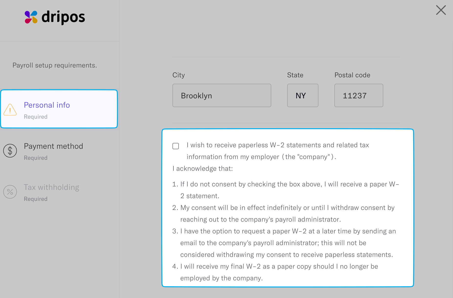 Upon setting up their payroll portal, employees must have consented to digital copies of their W-2s.