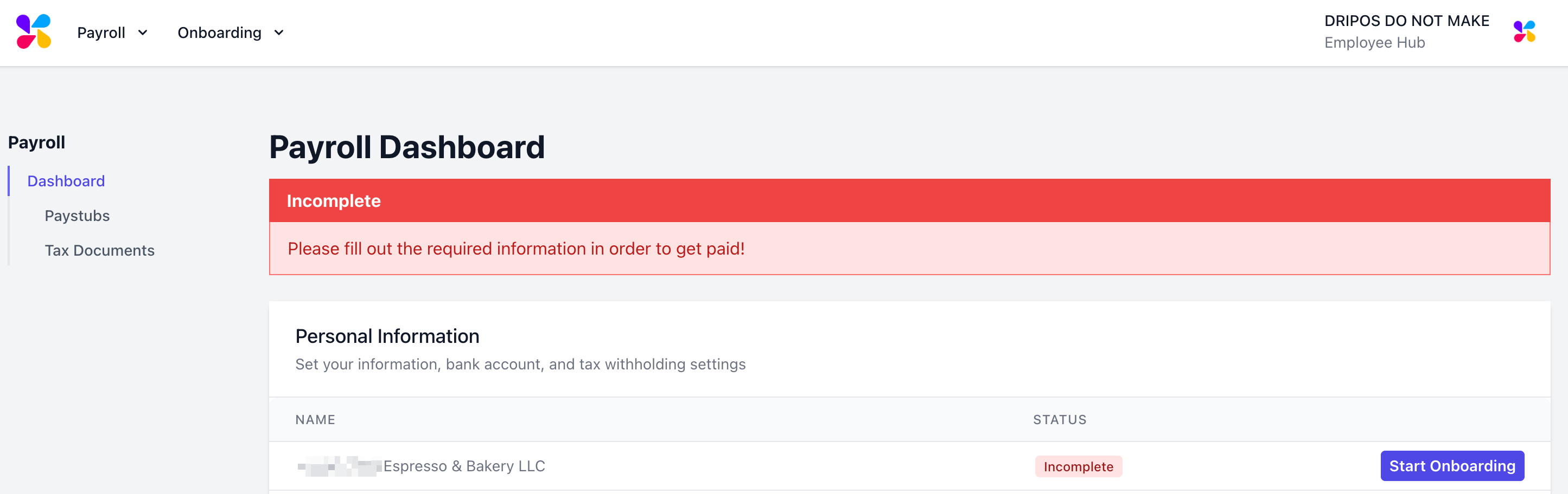 Payroll onboarding is not supported on mobile phone browsers. Please use a computer or iPad browser if possible.