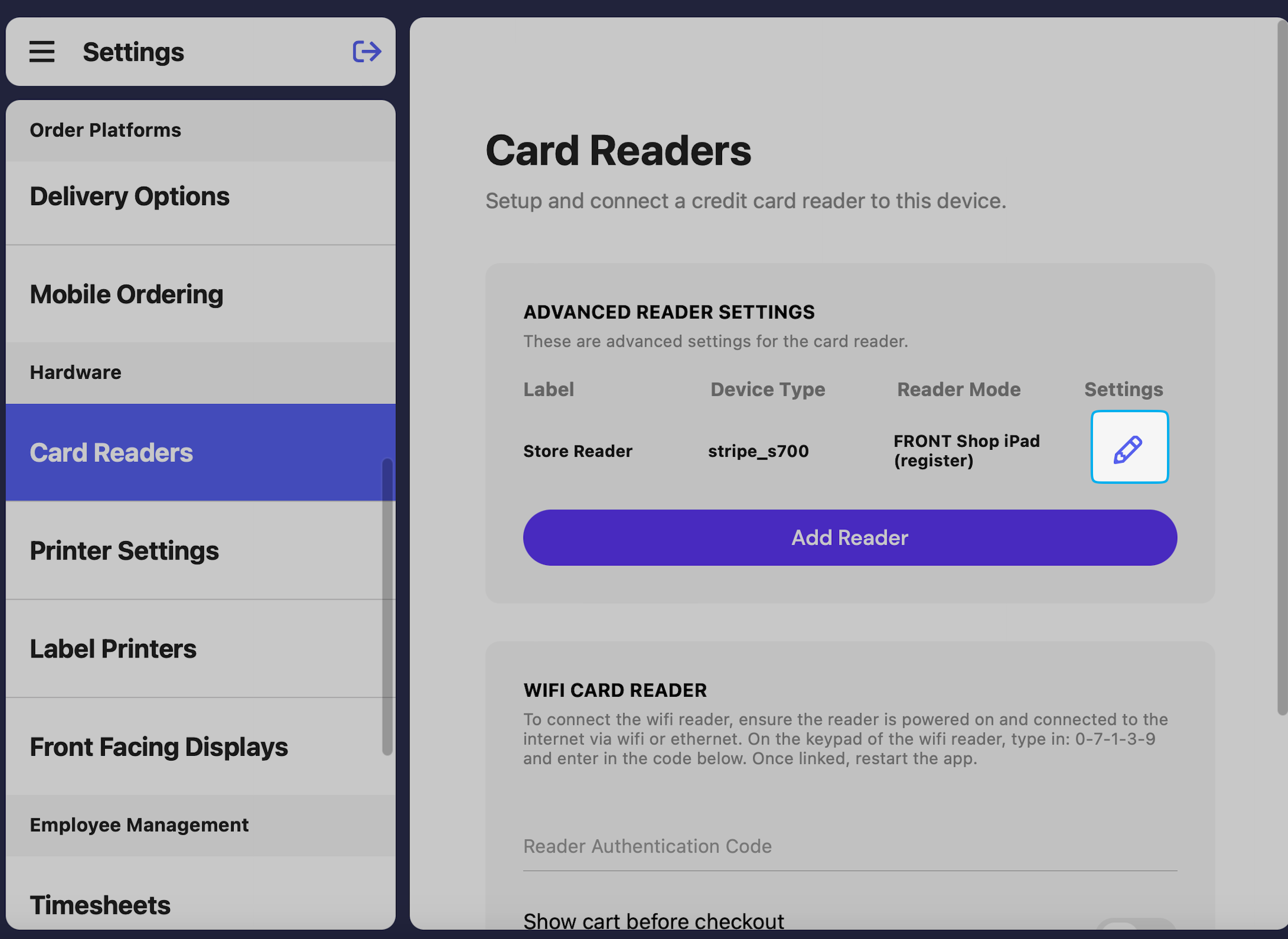 Navigate to POS Settings > Card Readers