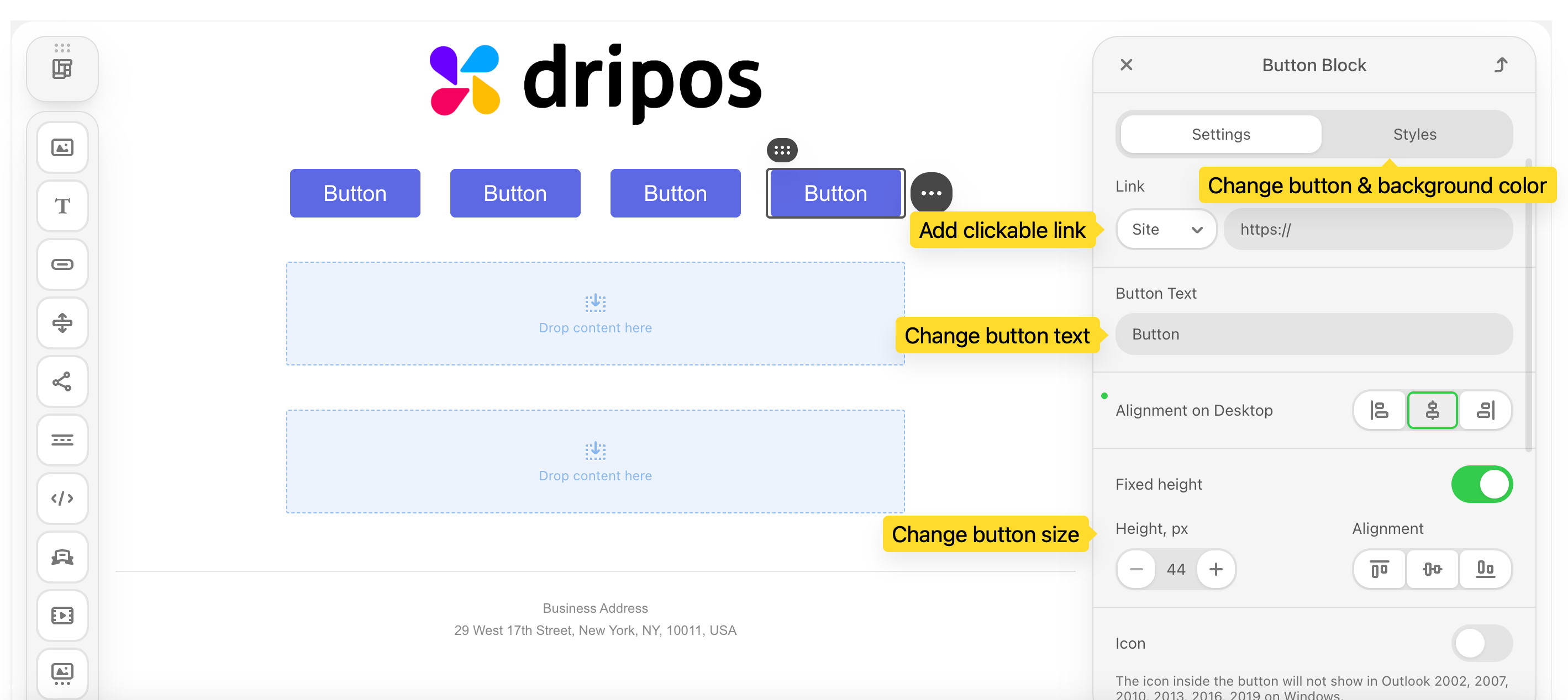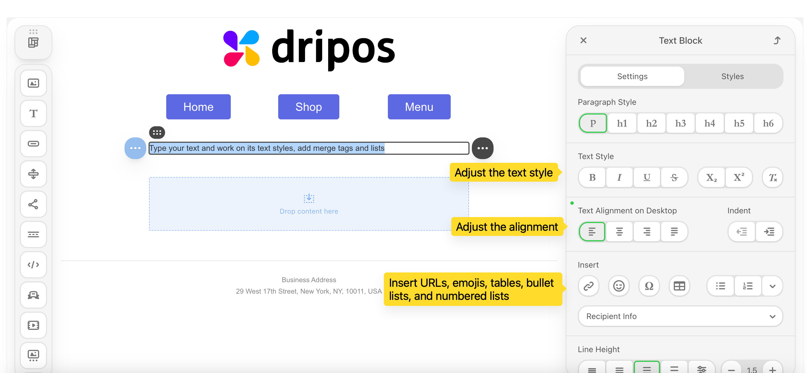 Create your email content directly on the Campaign Builder or save the campaign as a draft and edit later!Email Body Components