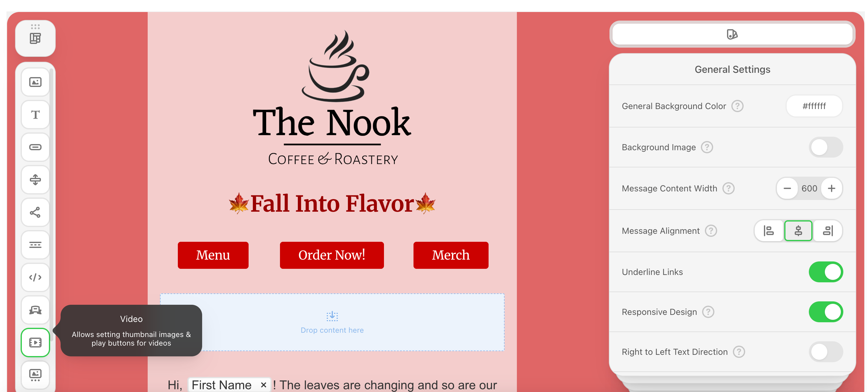 Add a YouTube, Instagram, TikTok, or Vimeo video to your email body.Add a structure to your email body and drag & drop the video icon into the structure.