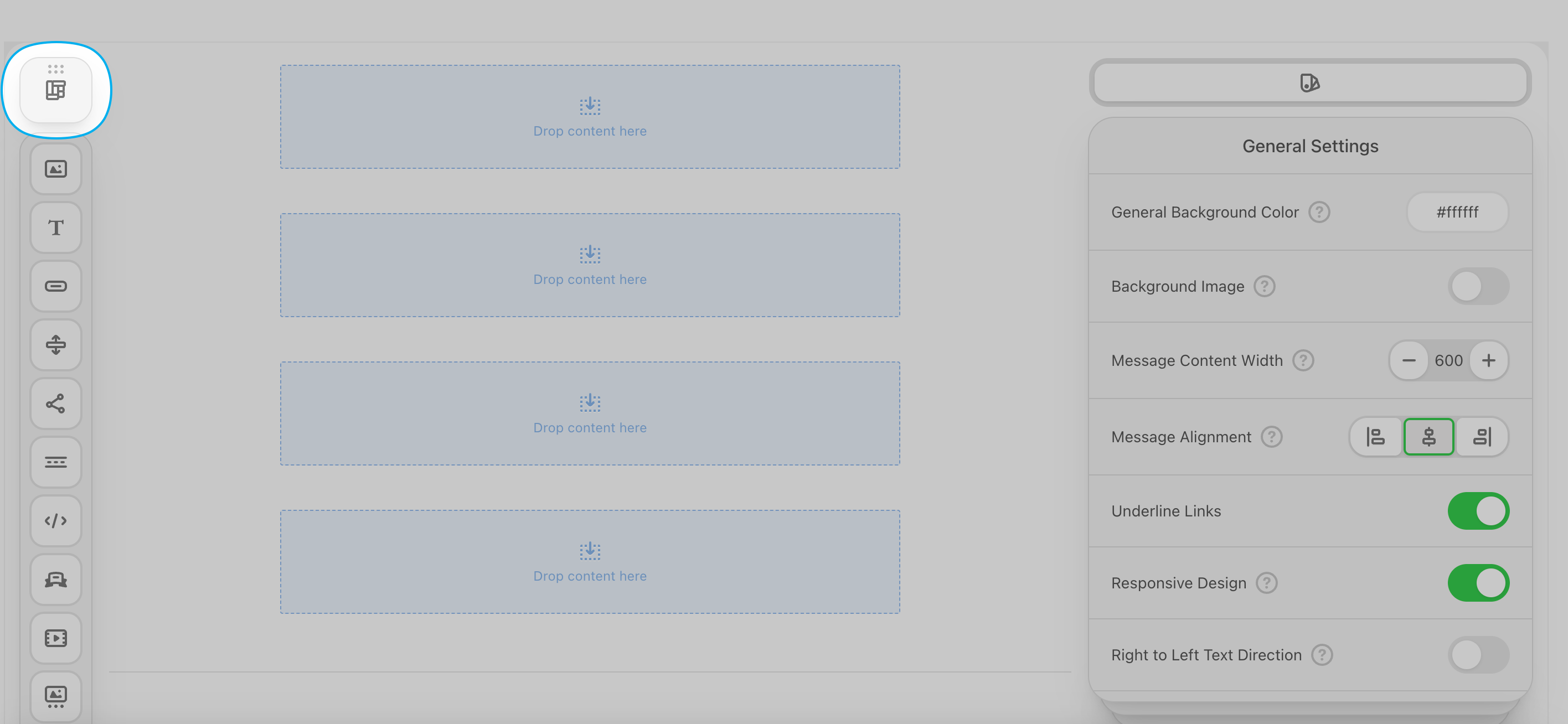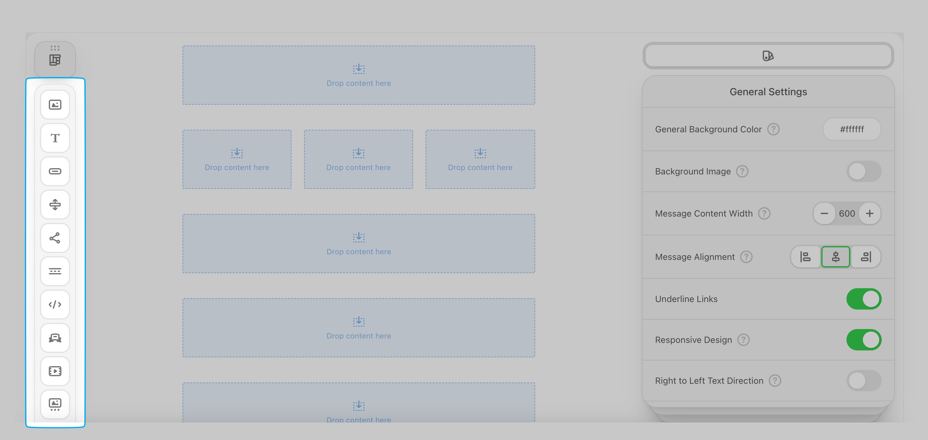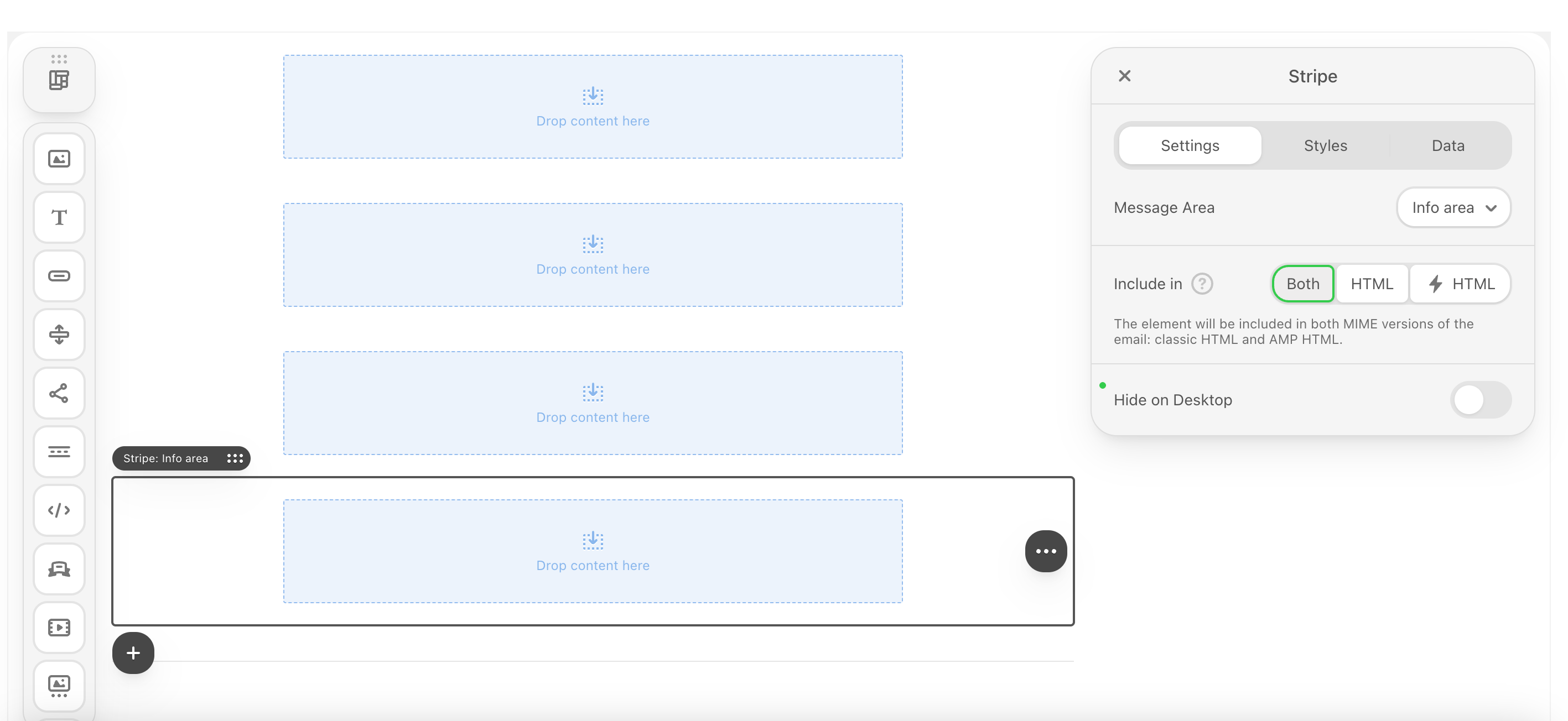 After inserting the structural layers (stripes and structures), it’s time to fill the containers with content.The core functionality of any email is delivered through these standardized blocks: