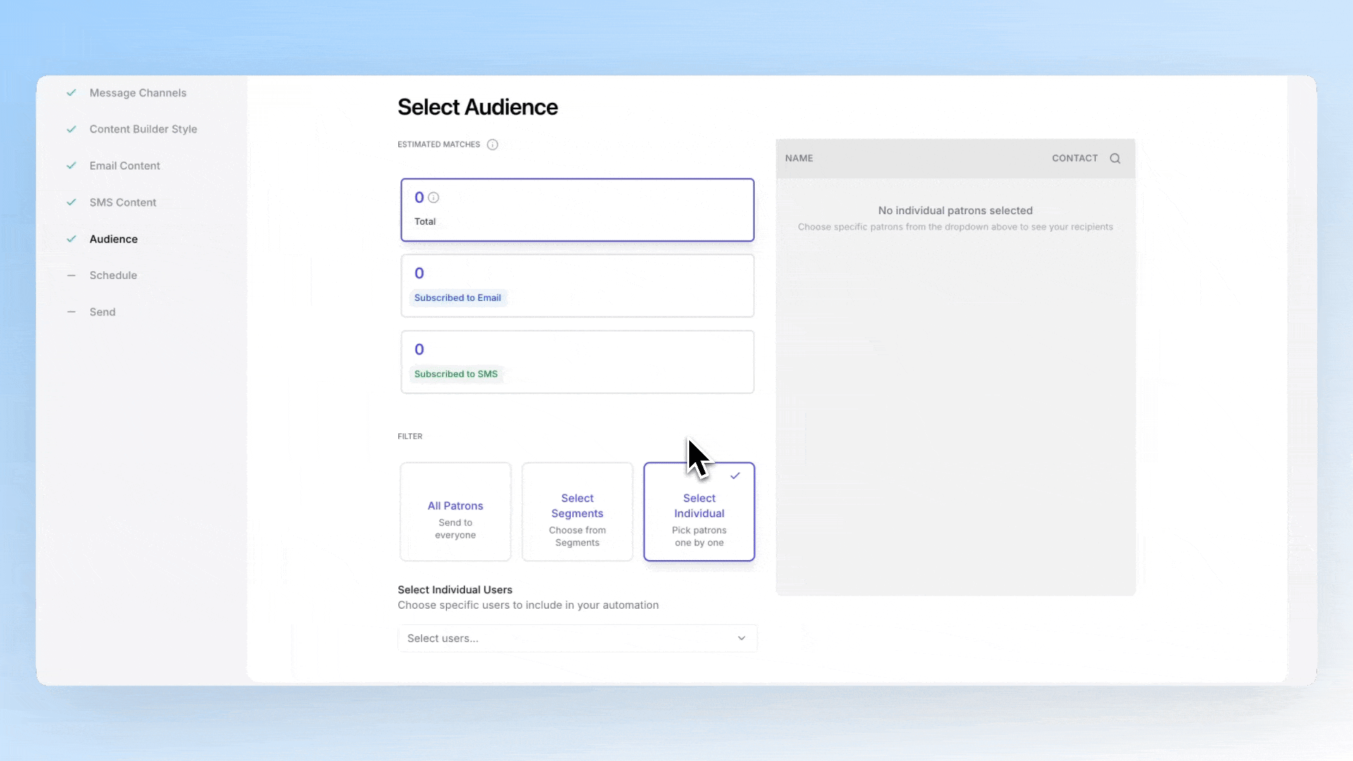 Select one or more individual patrons to send a campaign to.