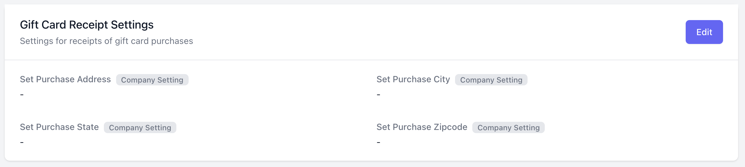 Settings for receipts of gift card purchases