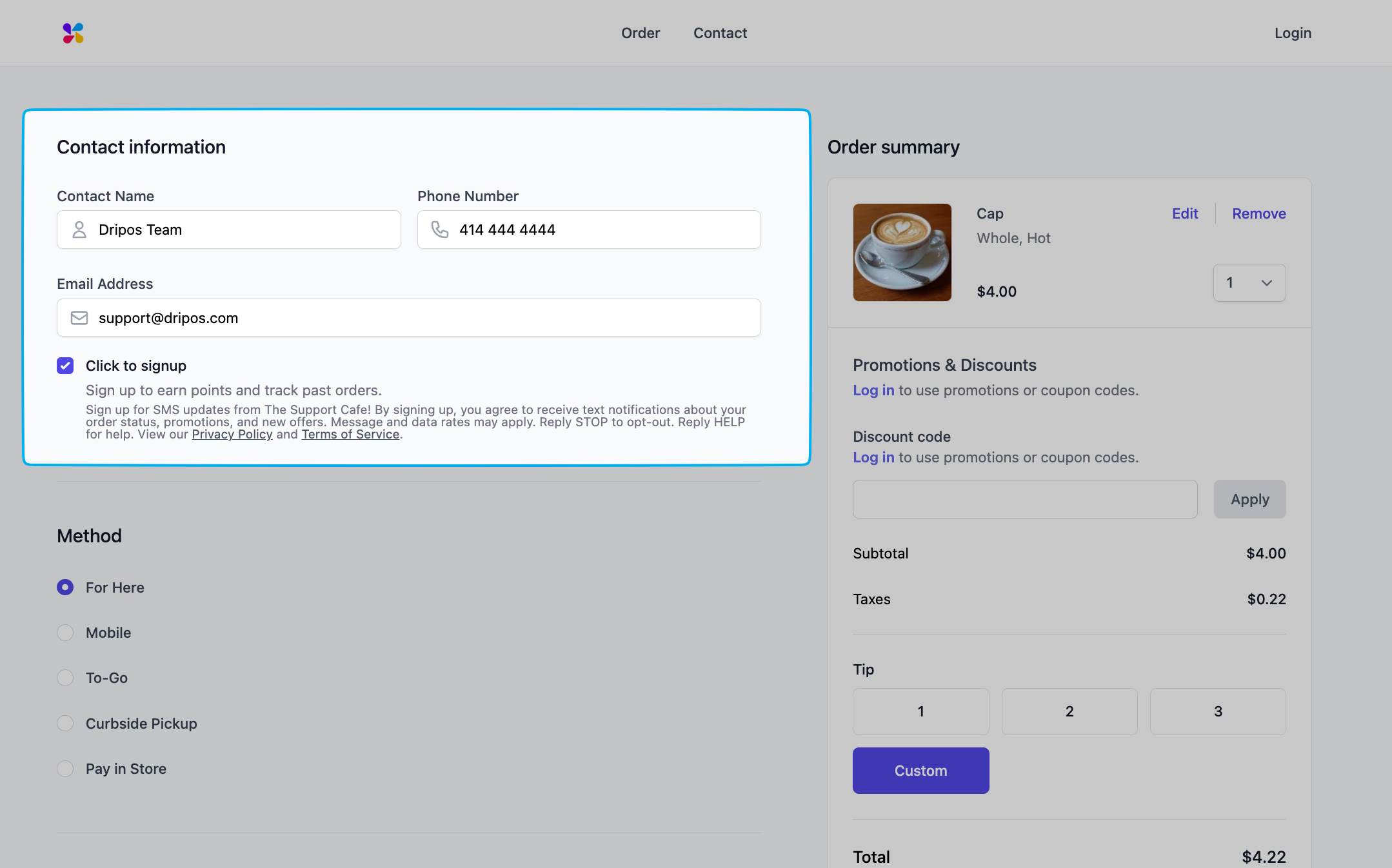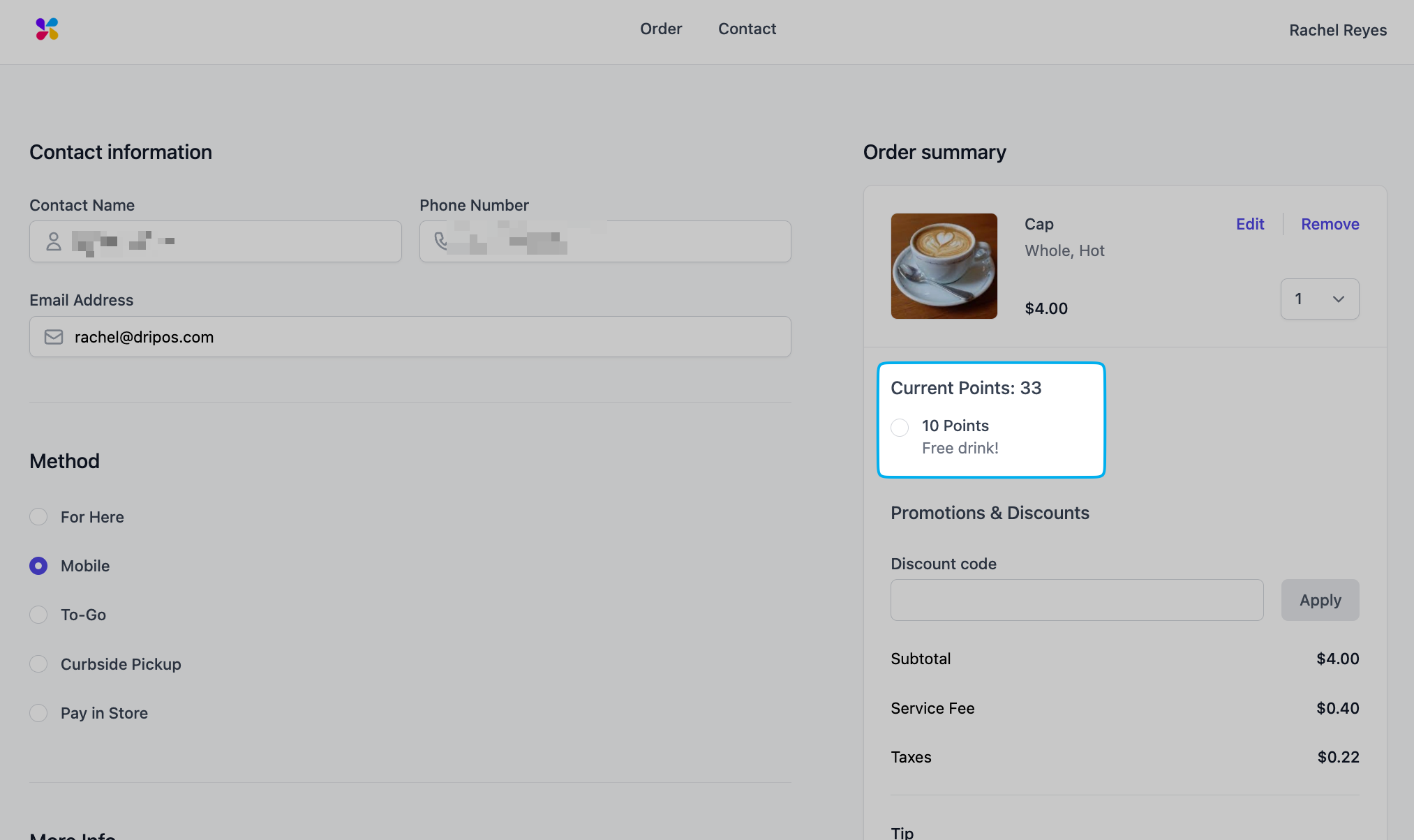 To earn loyalty points, customers must input their phone number during the checkout process. Customers will automatically earn loyalty points if the products in their cart meet your loyalty system’s earning rules. See below for the various ways patron information can be inputted for an order:- S700 Card Reader