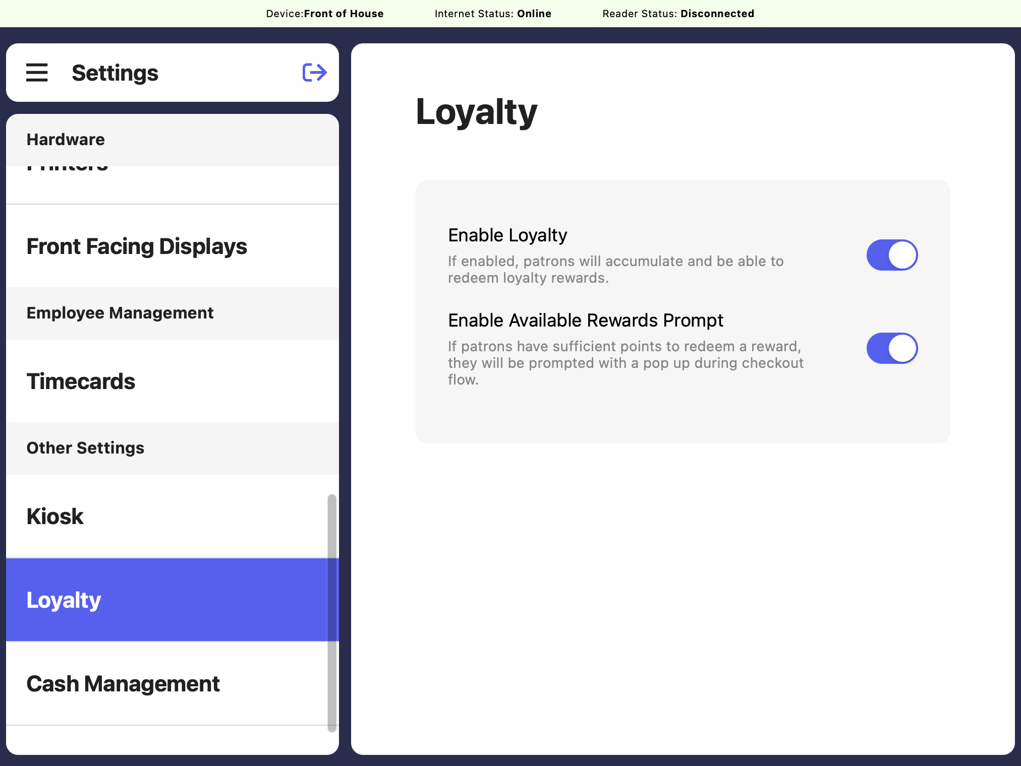If enabled, patrons will be able to earn loyalty points and redeem them for loyalty rewards