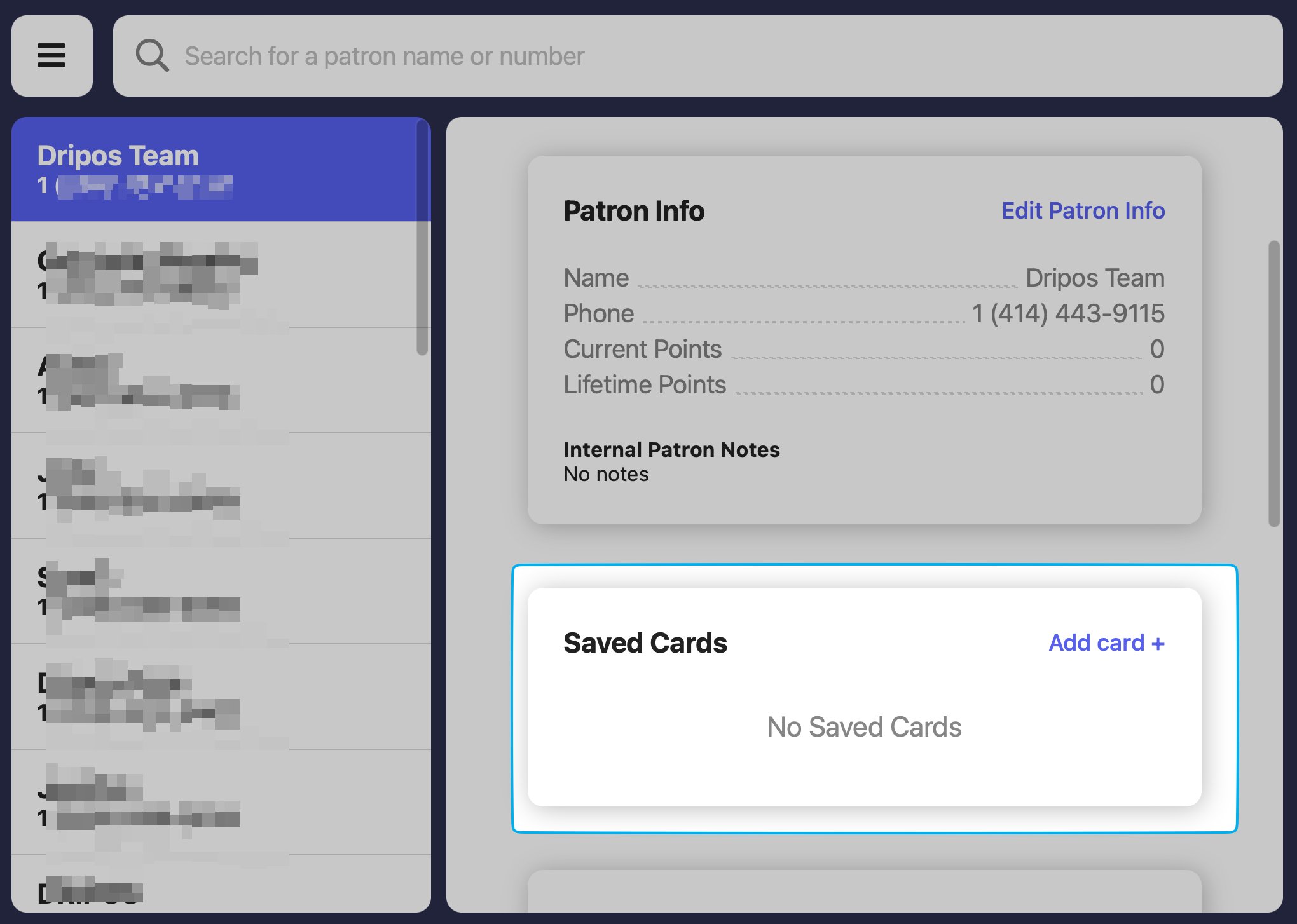 Link card payment methods to patron accounts. When a linked card is used as payment, the patron account will automatically then attach itself to the order.- Point of Sale