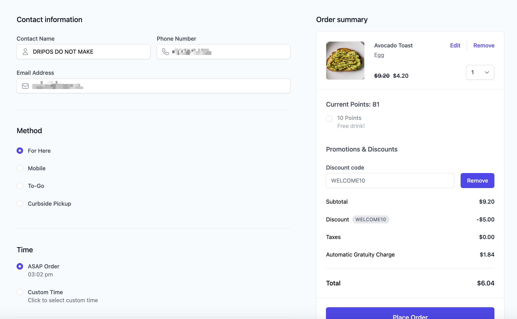 Coupon codes can be applied to mobile orders or at the Point of Sale. Mobile Ordering To apply coupon codes to an order, customers must log in to the shop’s mobile ordering platform (app or website) using their phone number.
