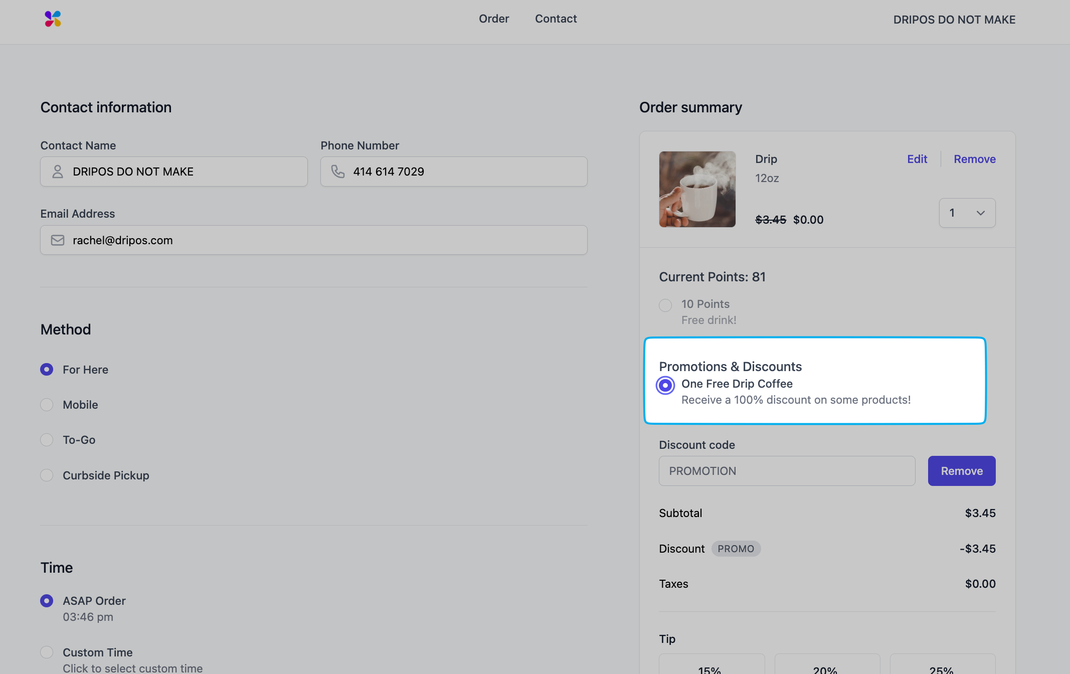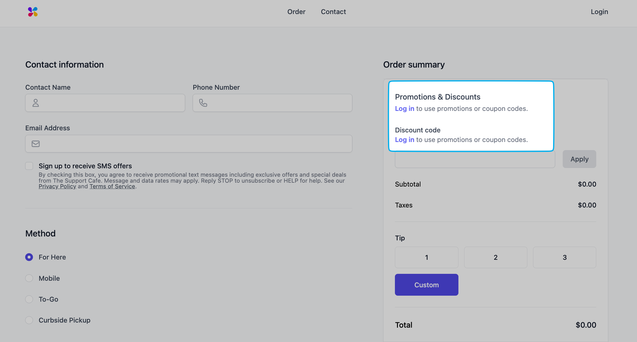 Mobile Ordering To apply promotions codes to an online order, customers must log in to the shop’s mobile ordering platform (app or website) using their phone number.