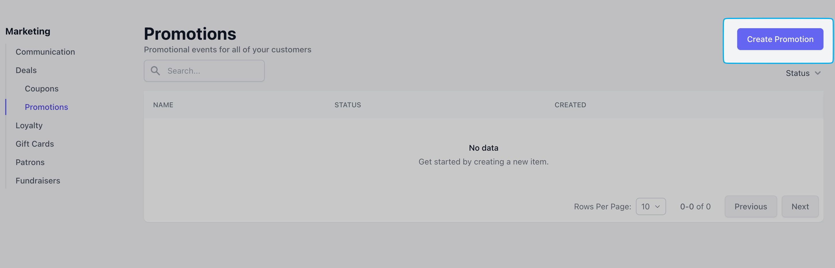 Navigate to the dashboard > Marketing > Deals > Promotions > Create Promotion