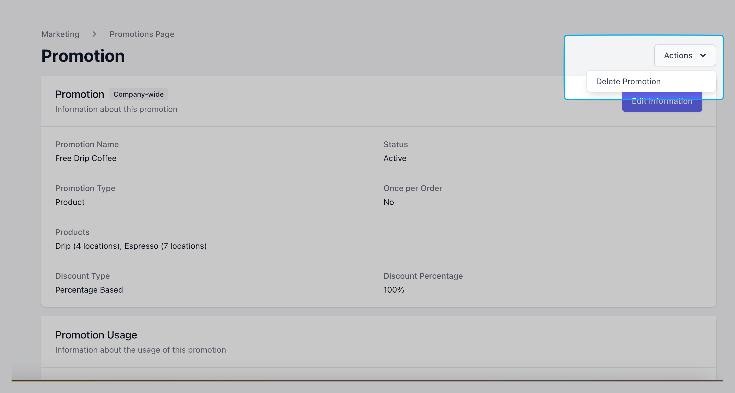Preview all promotion details and click save to create. Promotions may be edited or deleted at any time.