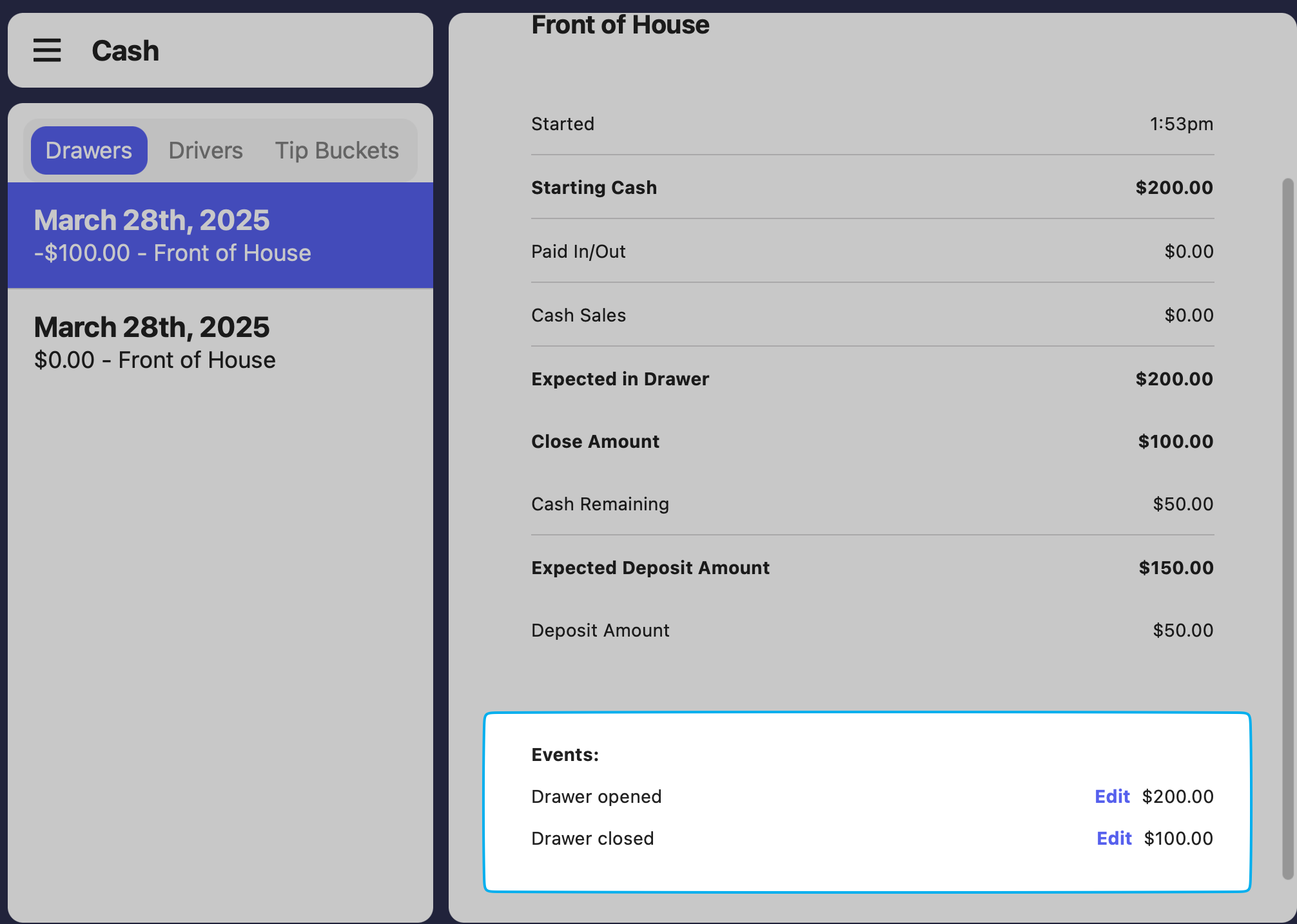 You’ve successfully opened a cash drawer! All cash sales made on this iPad will be tracked here.