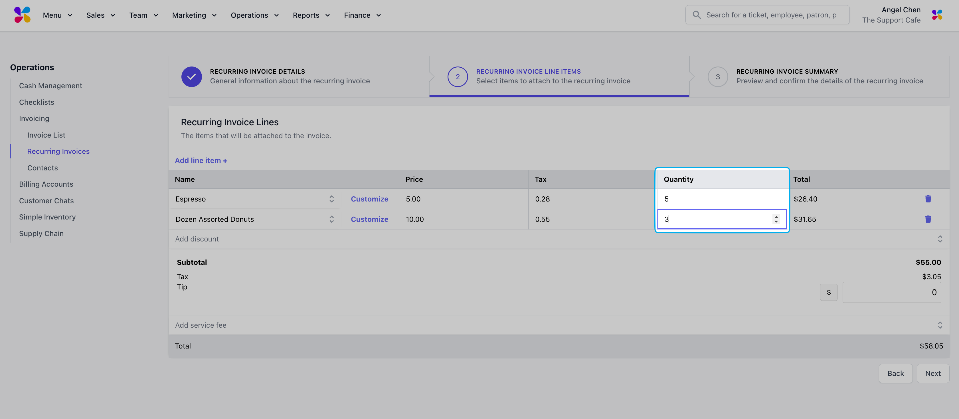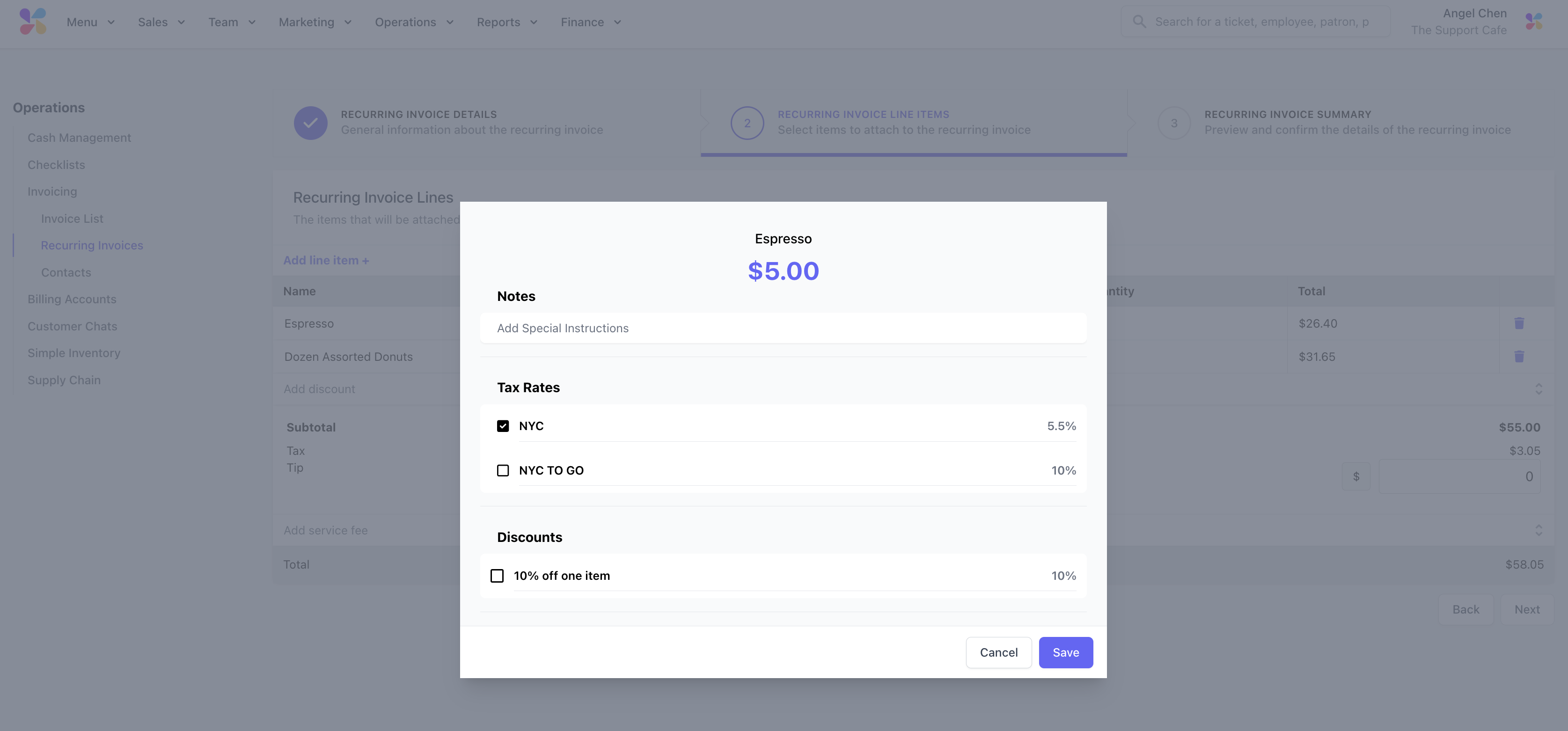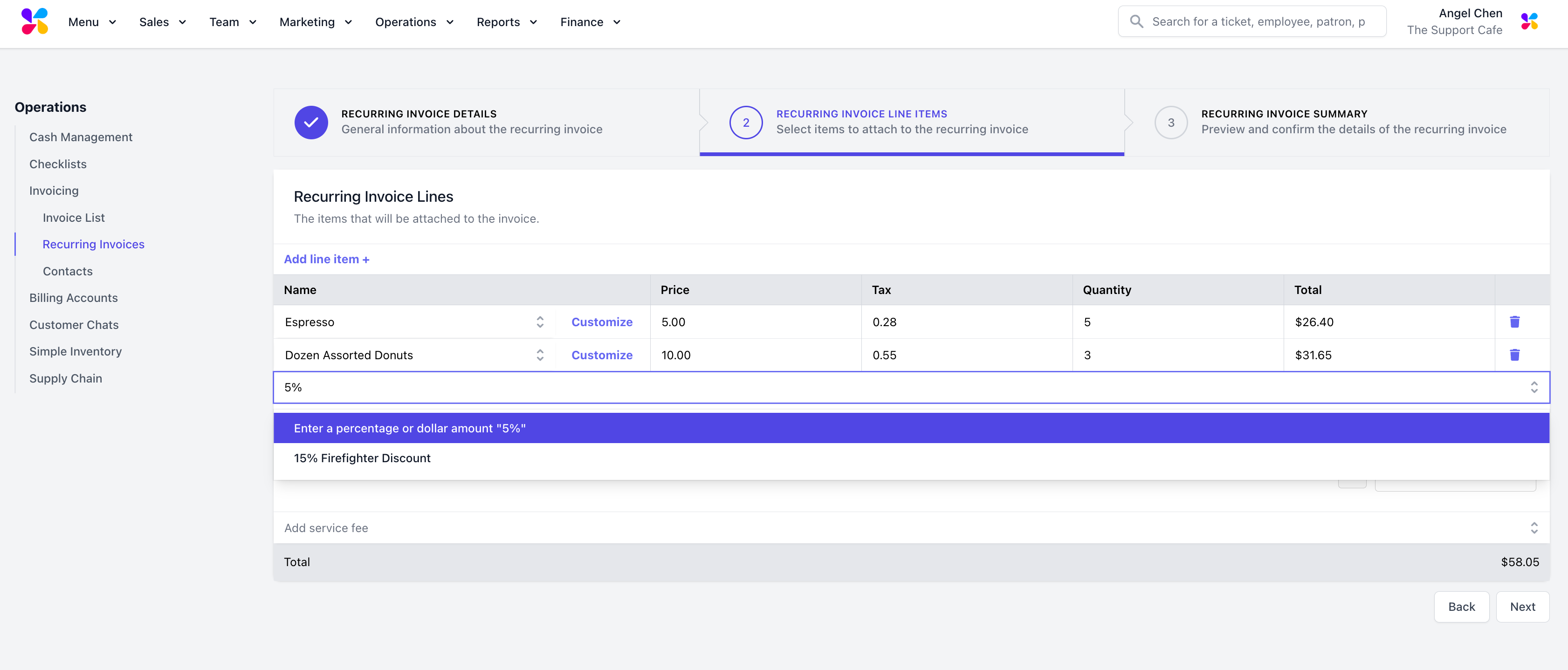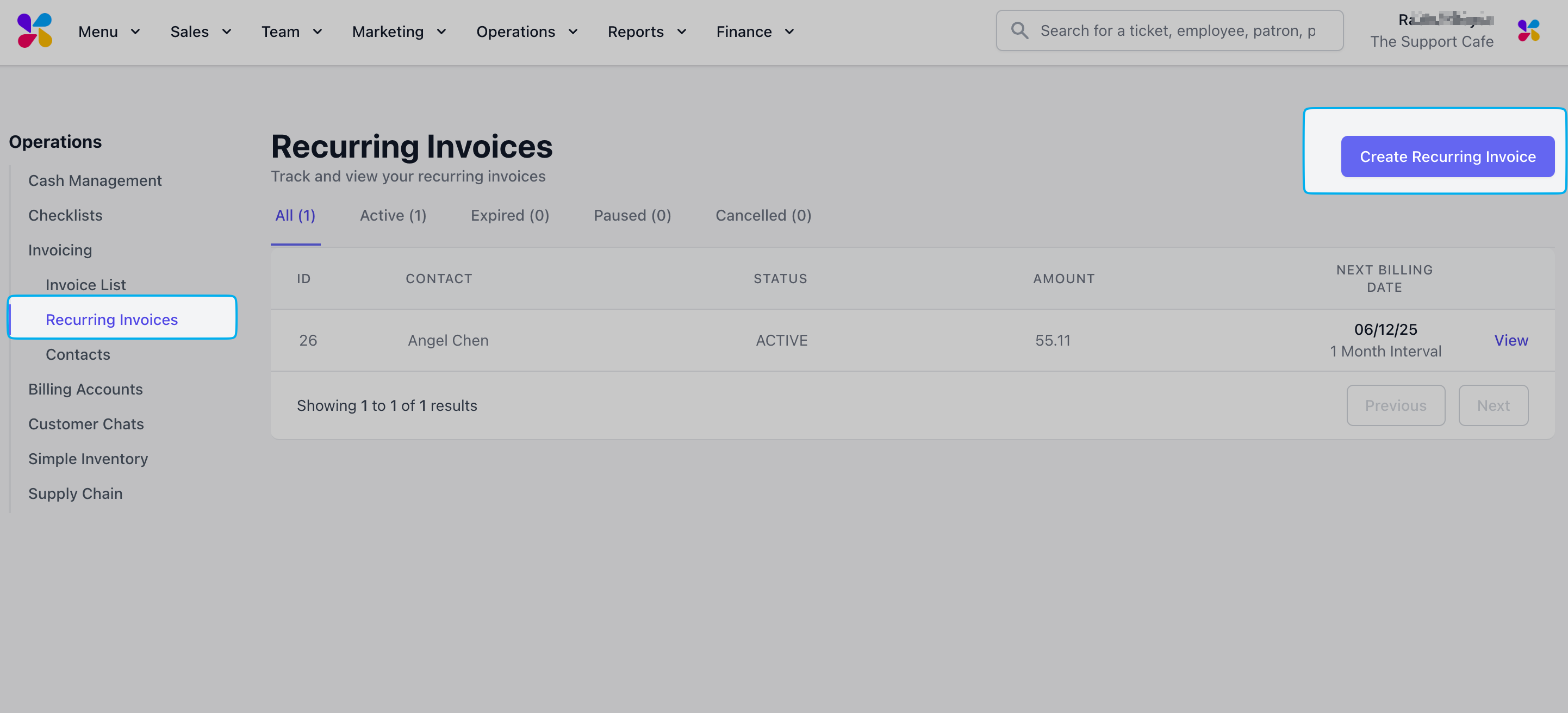 Log in to the Dashboard and navigate to Operations > Invoicing