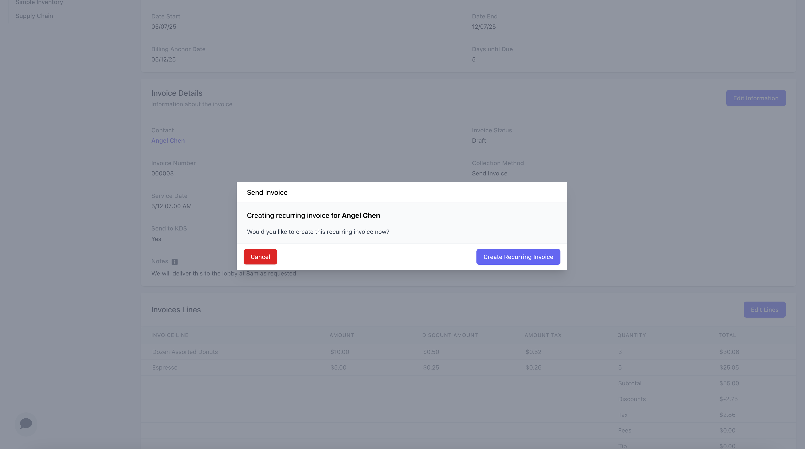 Create & Send: Create and send the invoice to the customer