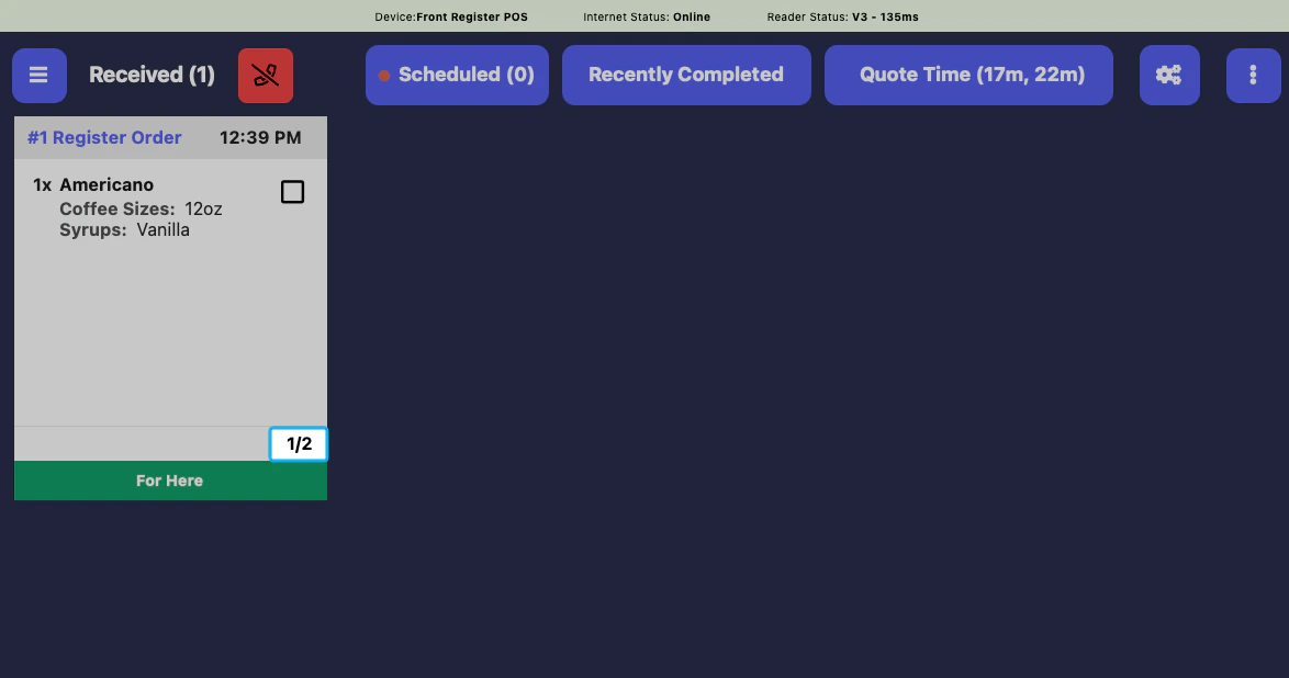 Use this setting to switch between our two KDS Modes: Simple KDS & Two-Stage KDS. Simple KDS will show all orders until completed, while two-stage separates tickets by received and in-progress.