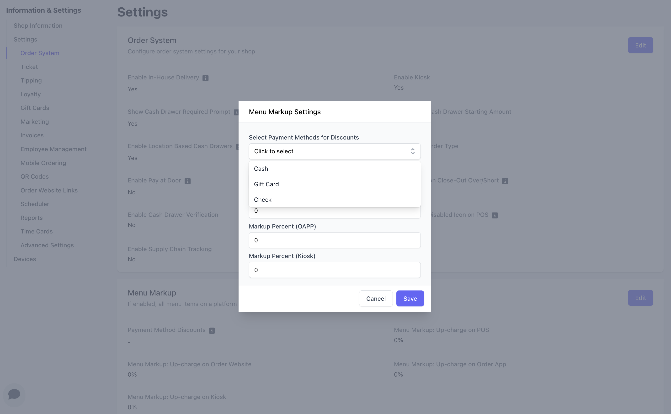Menu Markup and Cash Discounts on the POS