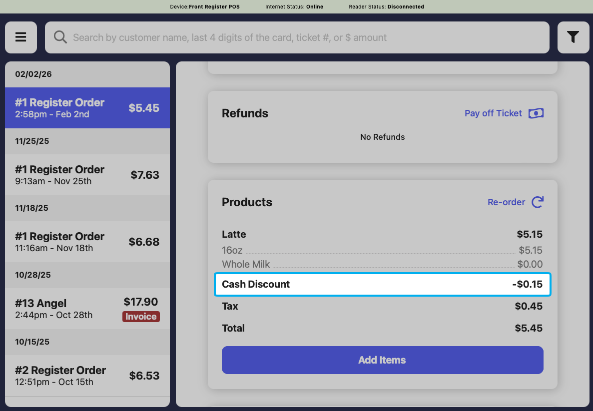 Your original menu prices will remain unchanged in the dashboard after you turn on menu markup settings. This markup will only appear on applicable platforms. In addition, your cash discount will deduct only by the marked up amount.