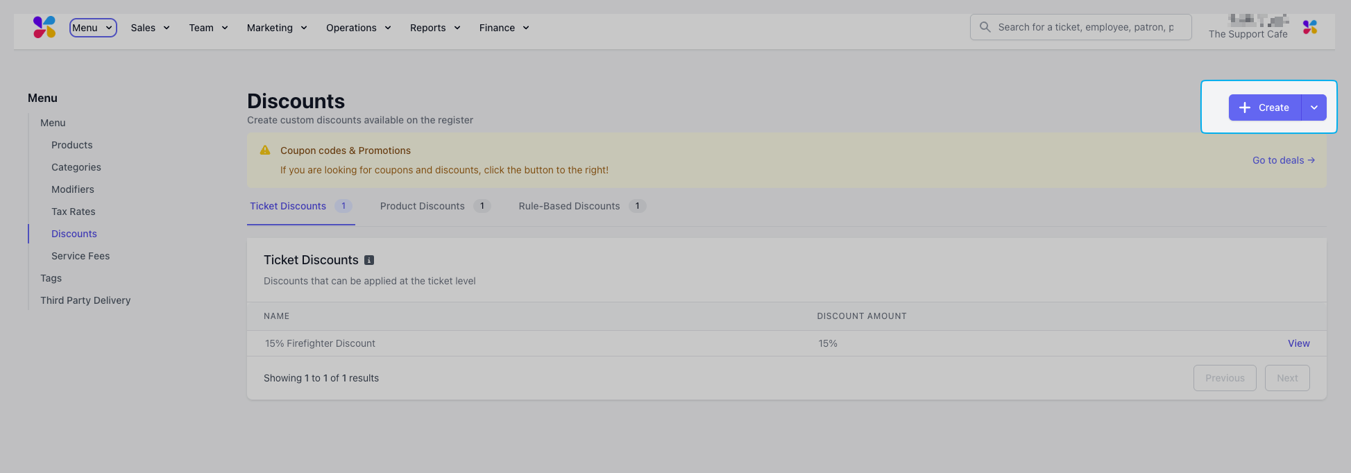 On the Dashboard, click Menu > Discounts. On the Discounts page, click Create Discount > Ticket Discount