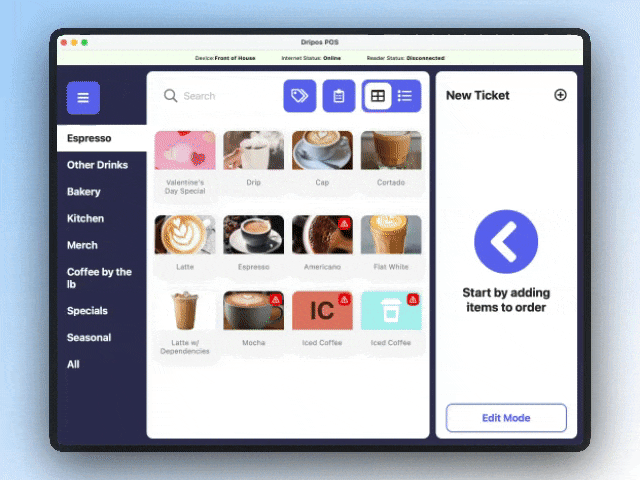 The product’s base price will be one fixed cost (i.e., a $3 muffin, a $5 one-sized cold brew)Modifiers can be added on to the base price to increase the product’s total cost at checkout.
