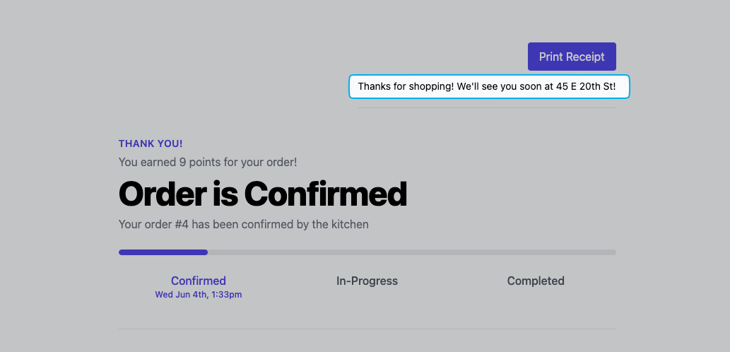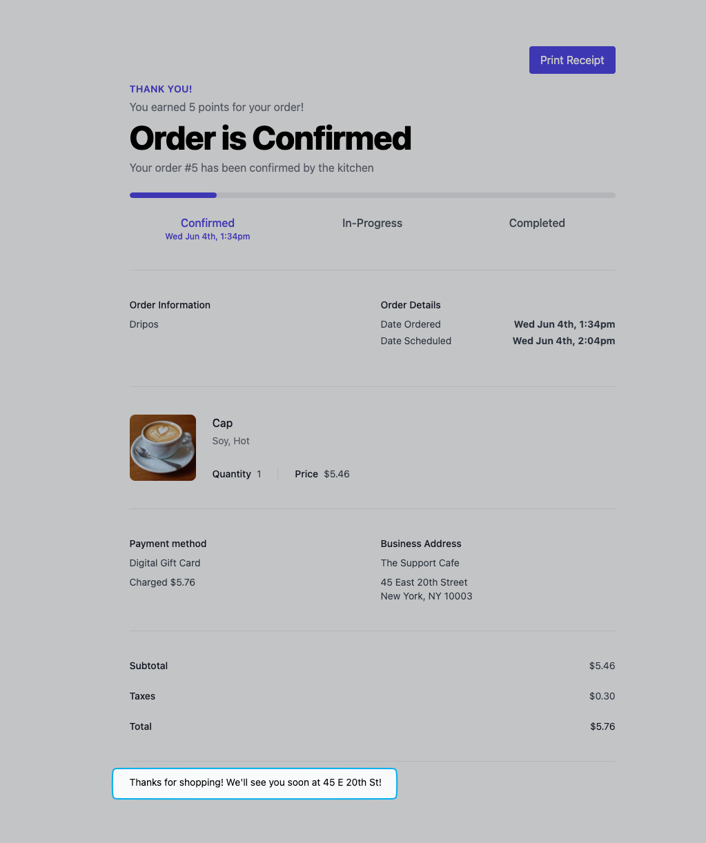 Set the Receipt Note position at the beginning or end of the Checkout page.
