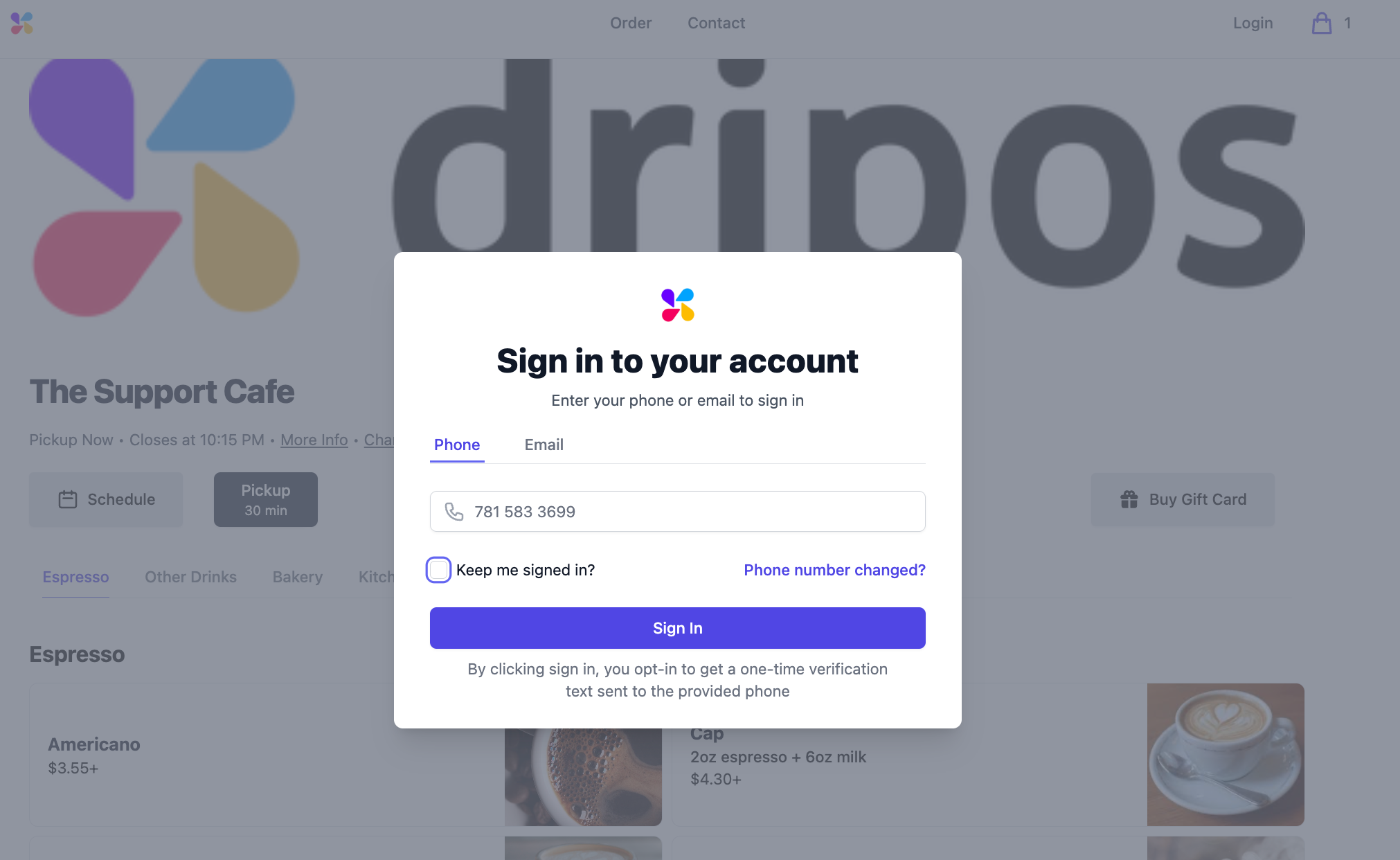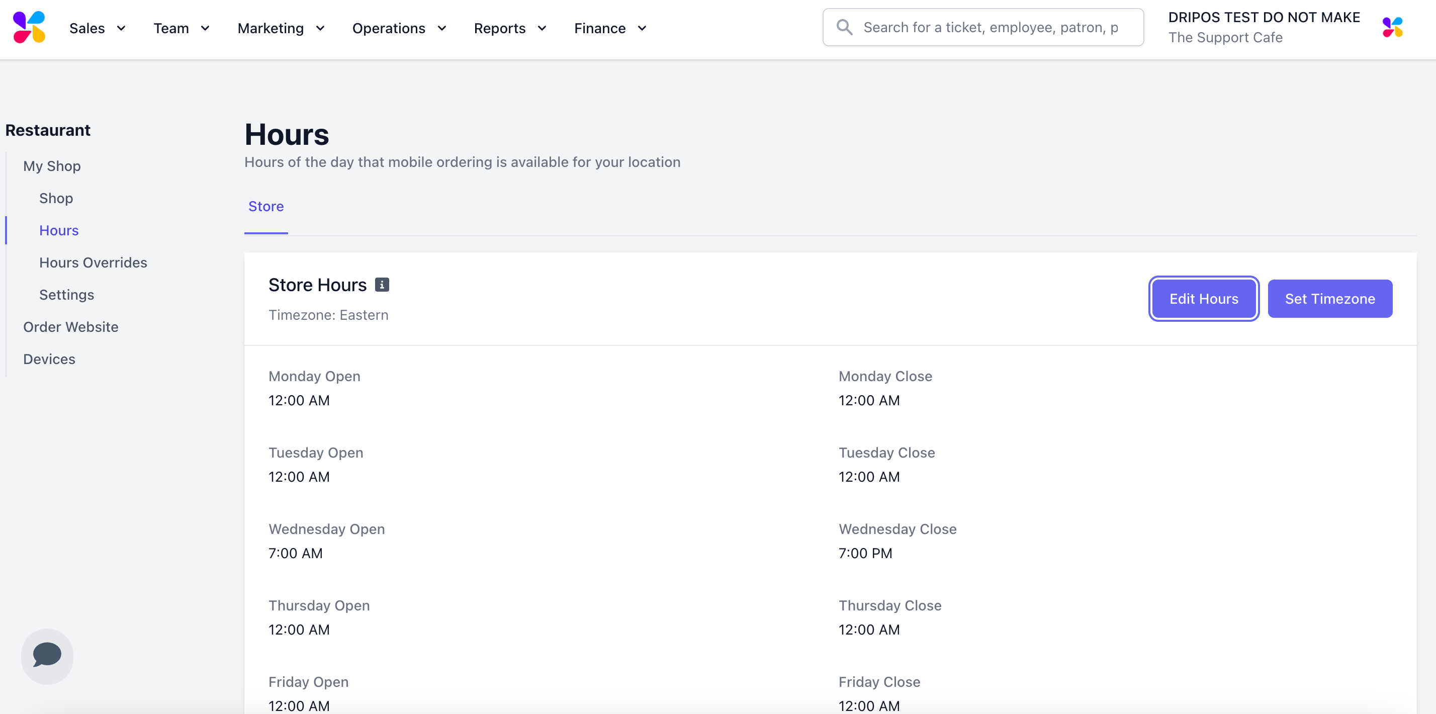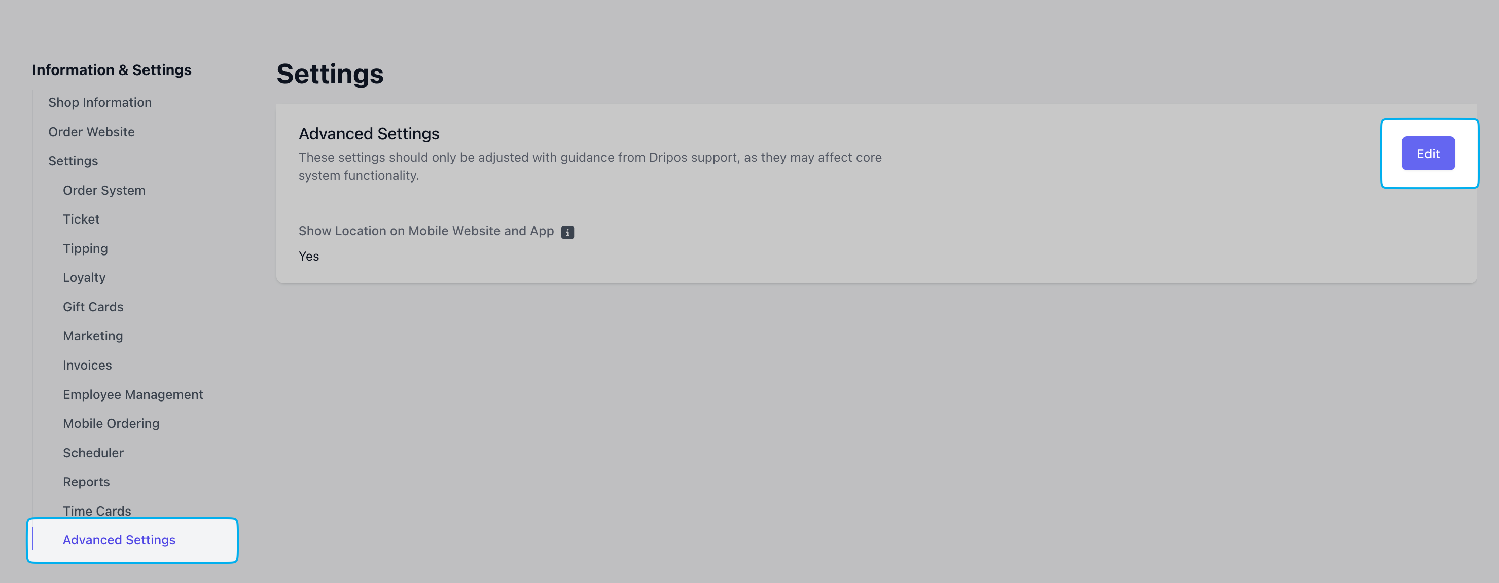 To activate a location’s mobile ordering website and page on the Dripos Mobile Order app: