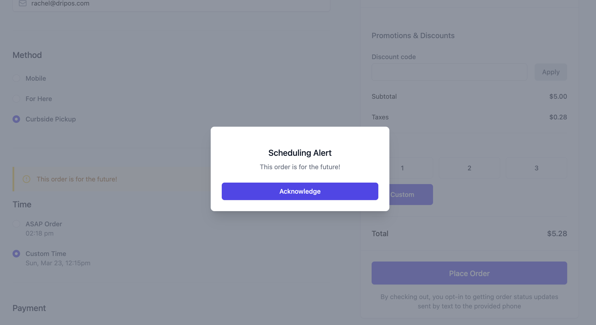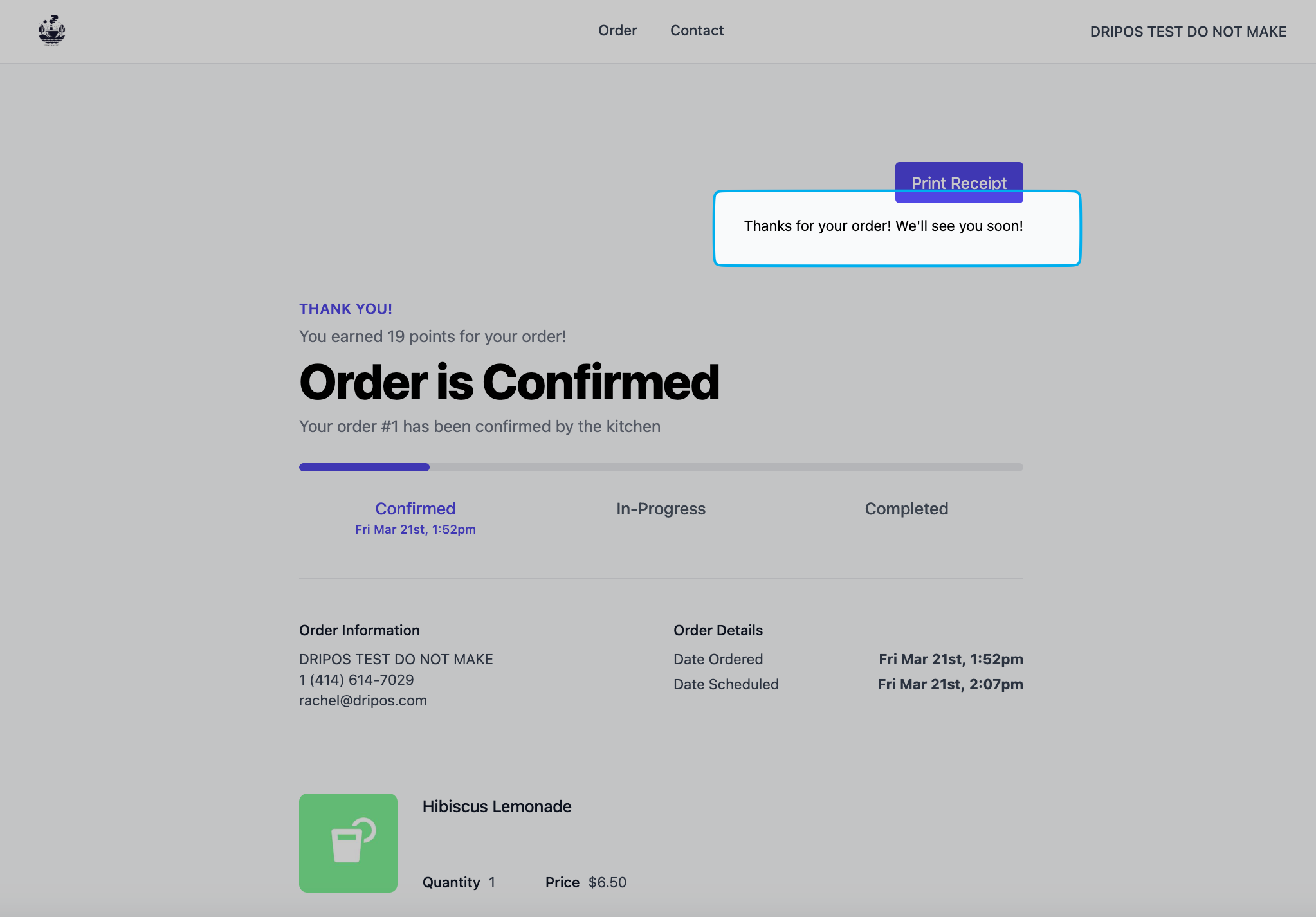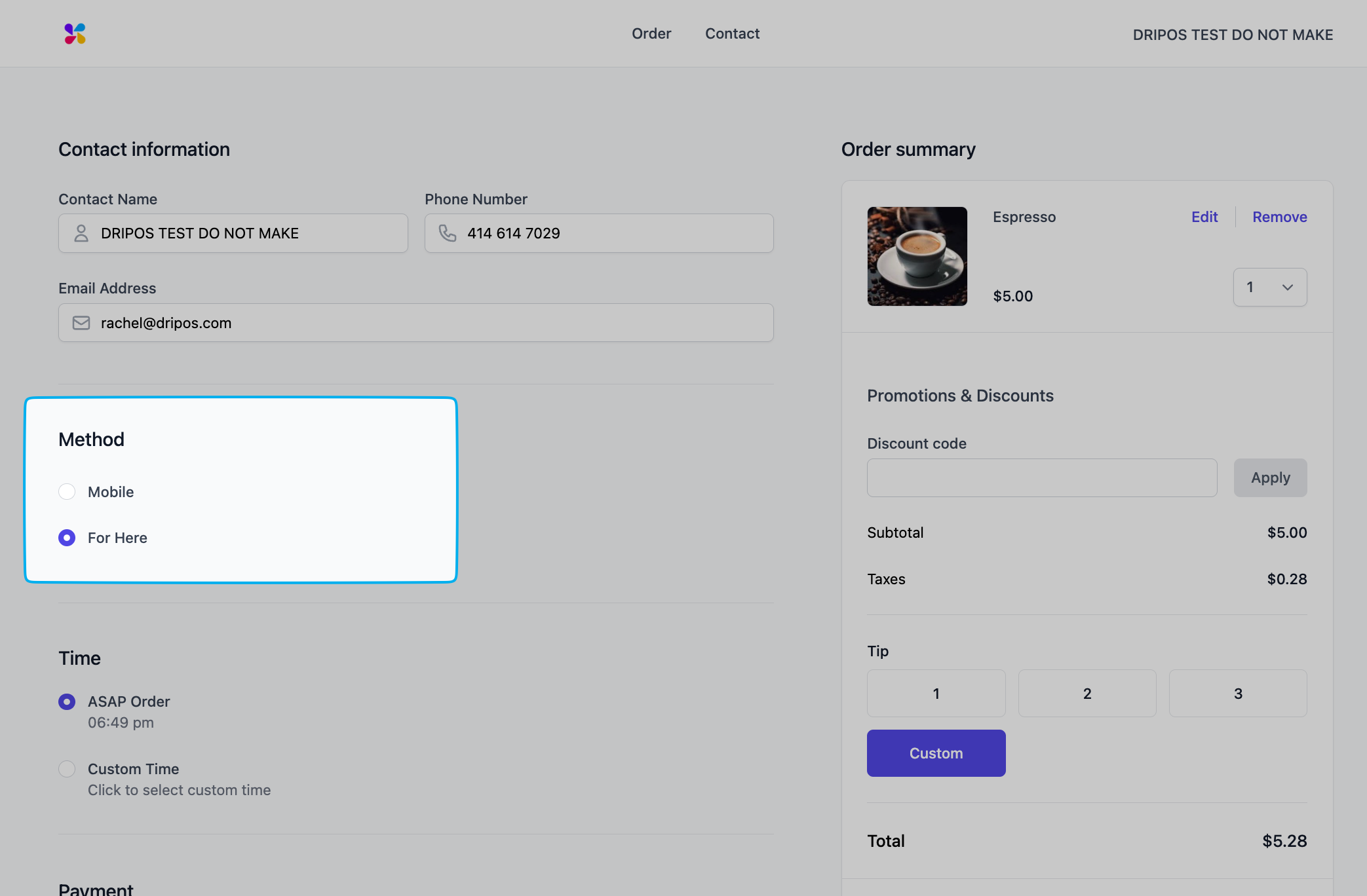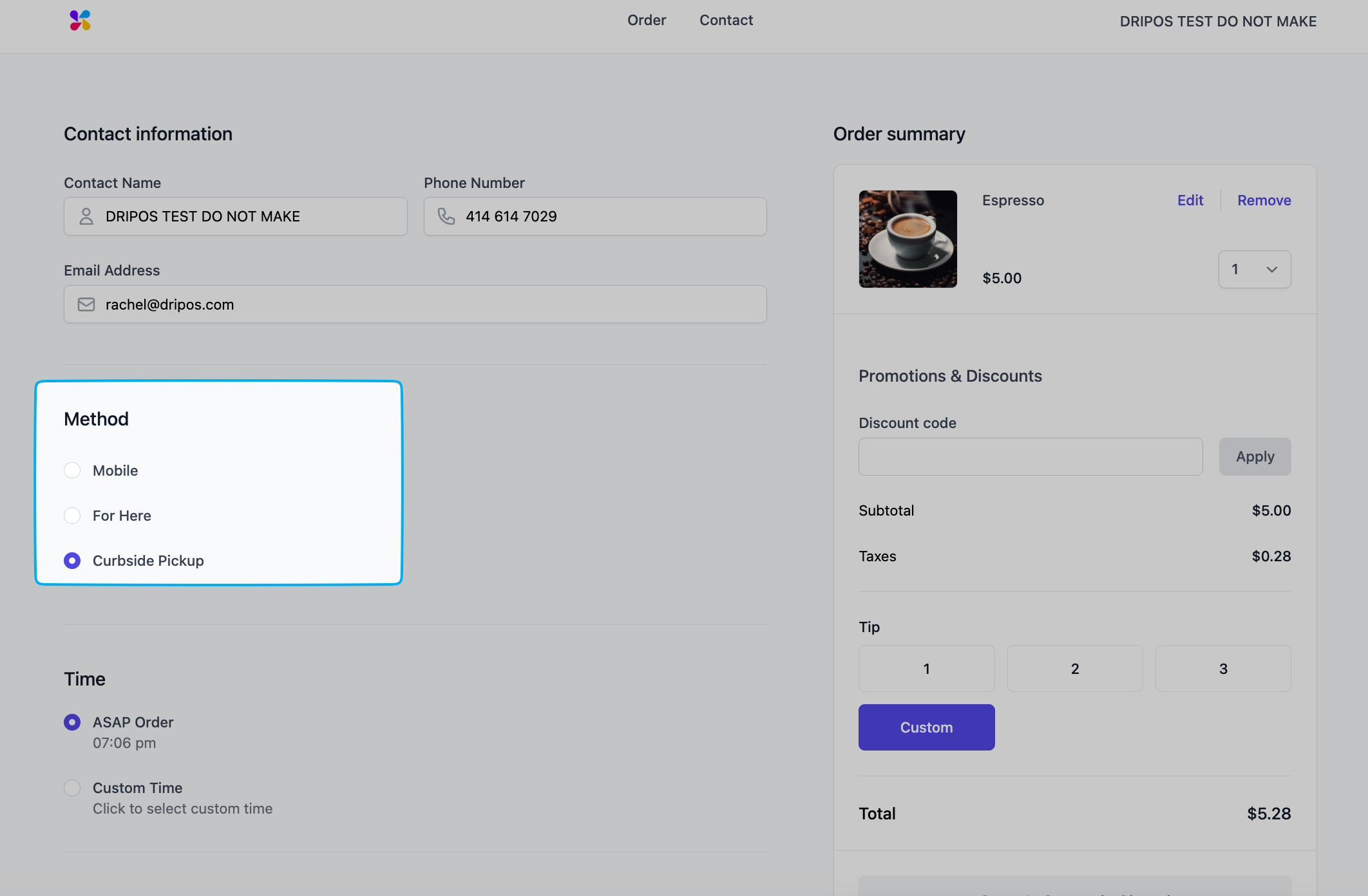 To activate a location’s mobile ordering website and page on the Dripos Mobile Order app: