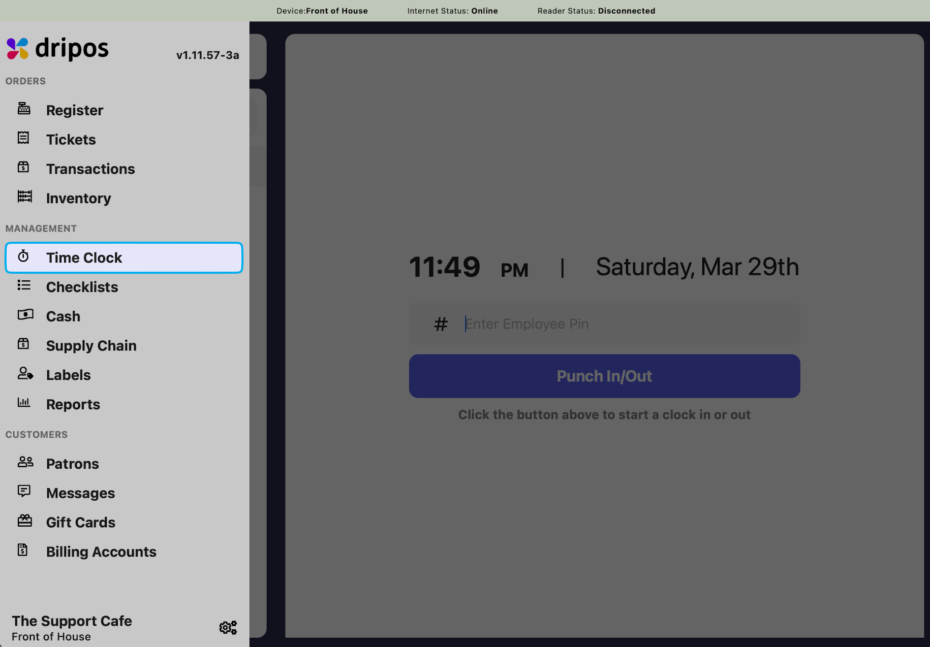 Dripos calculates tips owed to employees based on time cards. Employees with tip-enabled roles join the tipping pool upon clock in. Upon clock out, Dripos calculates their portion of tips to be paid out in cash for that shift.A manager or owner is responsible for confirming these tip payouts and distributing the amount due in cash.