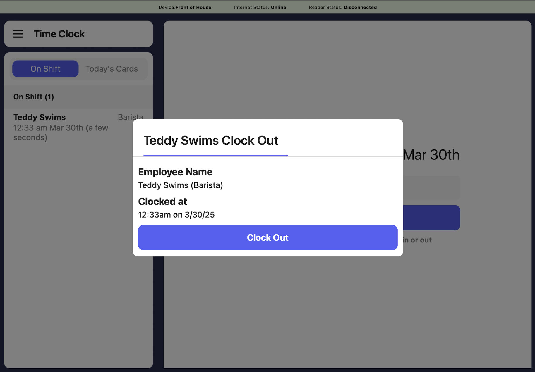 We highly recommend making corrections to time cards as soon as they are noticed. This allows the credit and debit system to correctly redistribute tips to each impacted employee upon clocking out of their next shift.