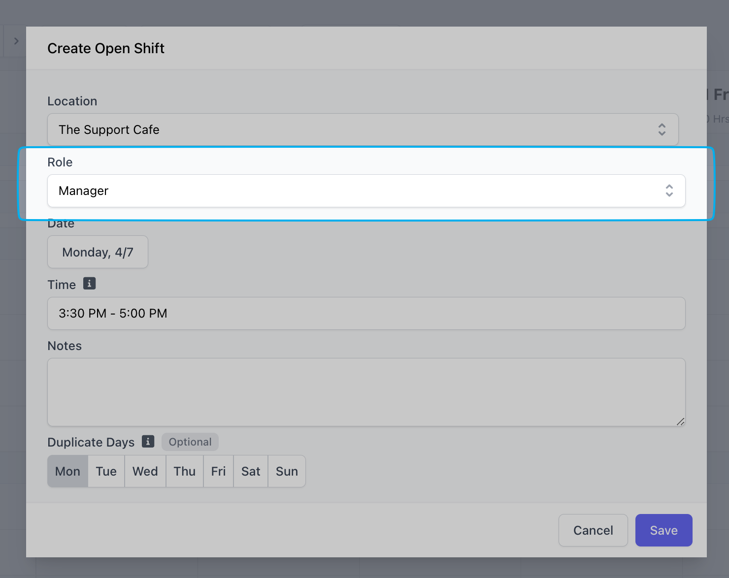 - Select multiple days to duplicate the shift
