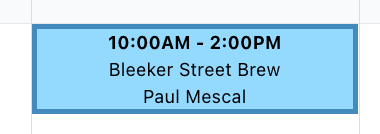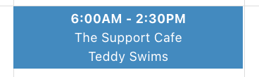 The shift will appear under the Date to the right of the employee’s name with a dark colored border and light colored fill with the shift information