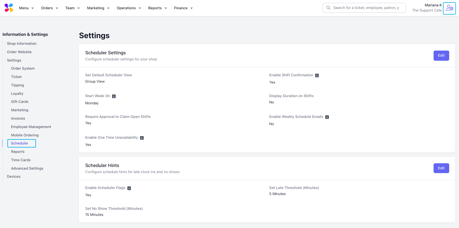 Default to Role View on the Scheduler Page: Toggle to change how employees and roles will display upon clicking Scheduling