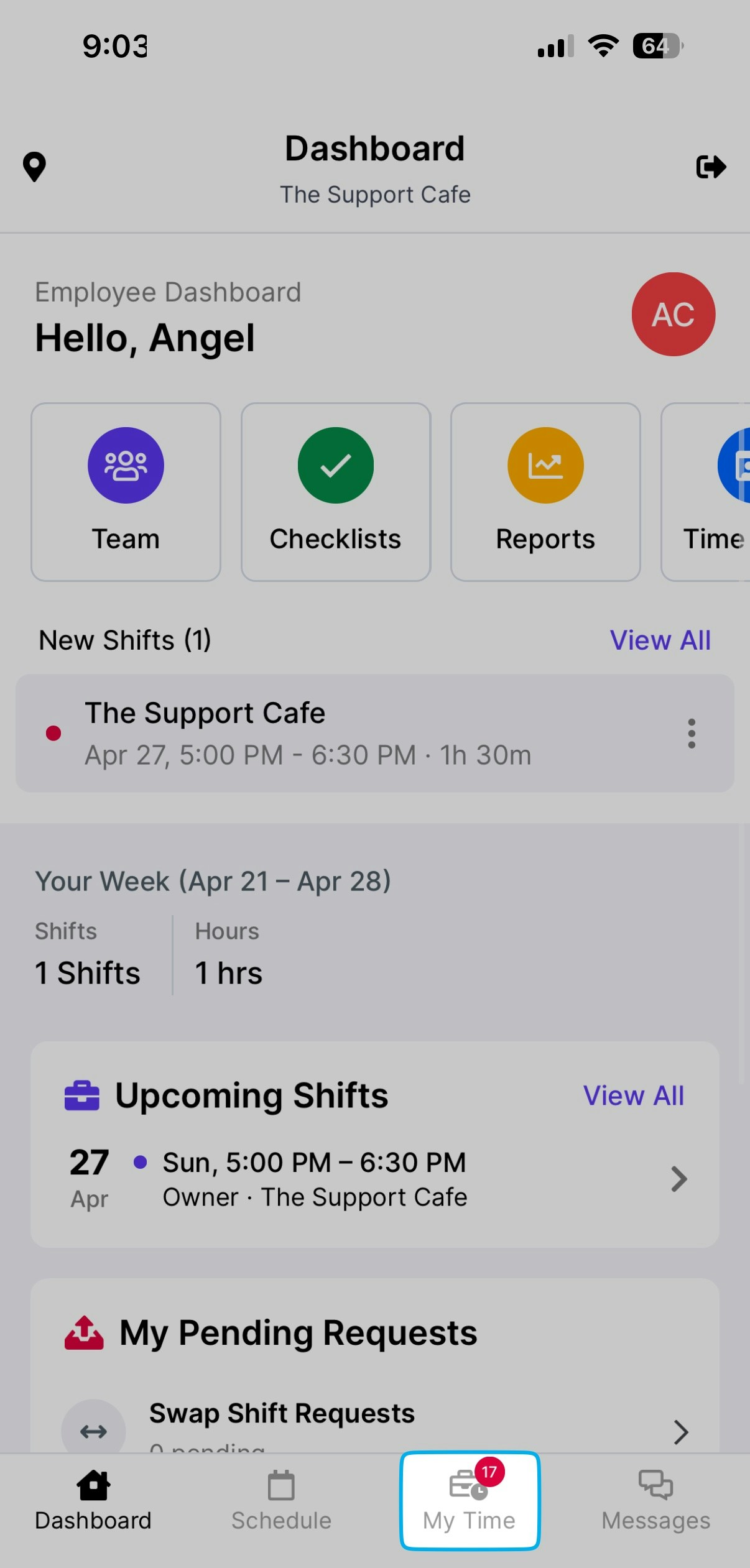 Employees can view their enrolled policies and submit time off requests directly from the Dripos Hub App.Submit Time Off Requests from the Hub App