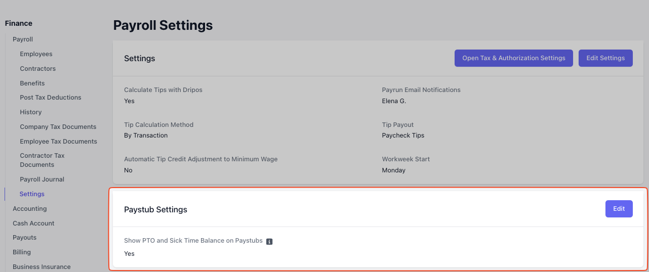 Payroll PTO Changes:: For Dripos Payroll users, we’ve made some significant changes to improve your payroll experience specific to paid time off and sick time: