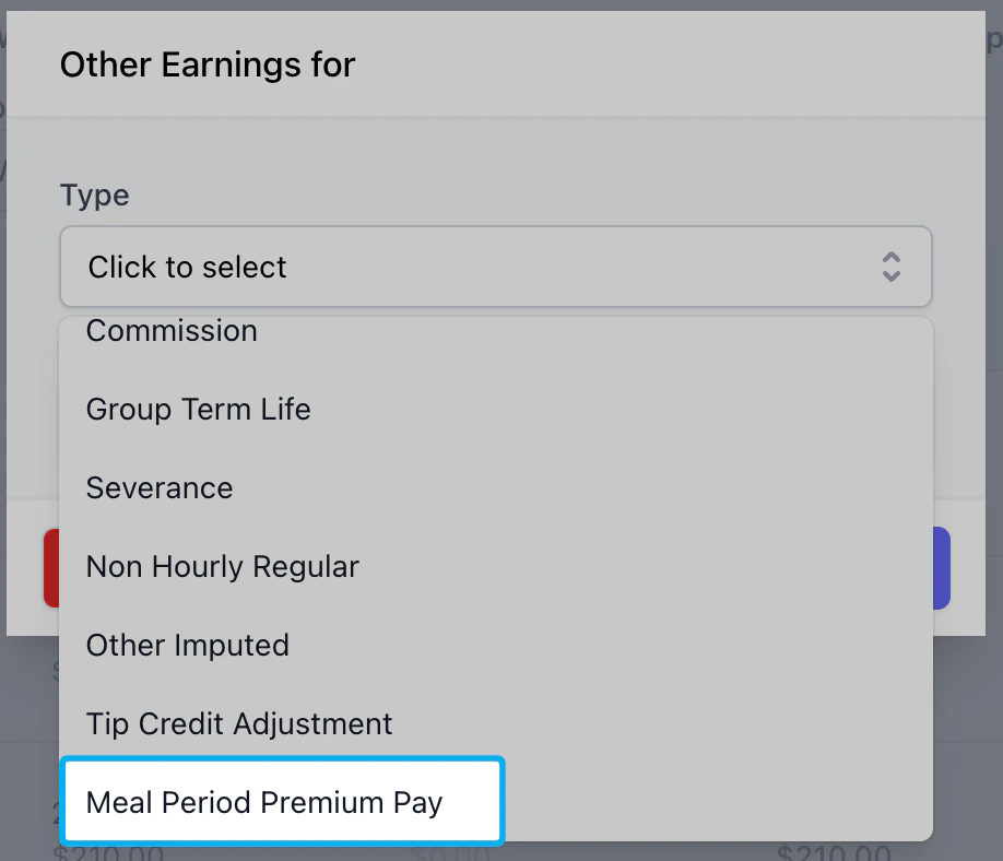 For CA payroll customers in particular, we have added a new earning type called Meal Period Premium Pay under Other Earnings.When running payroll, you can add this earning type which will then be visible on the employee’s paystub.