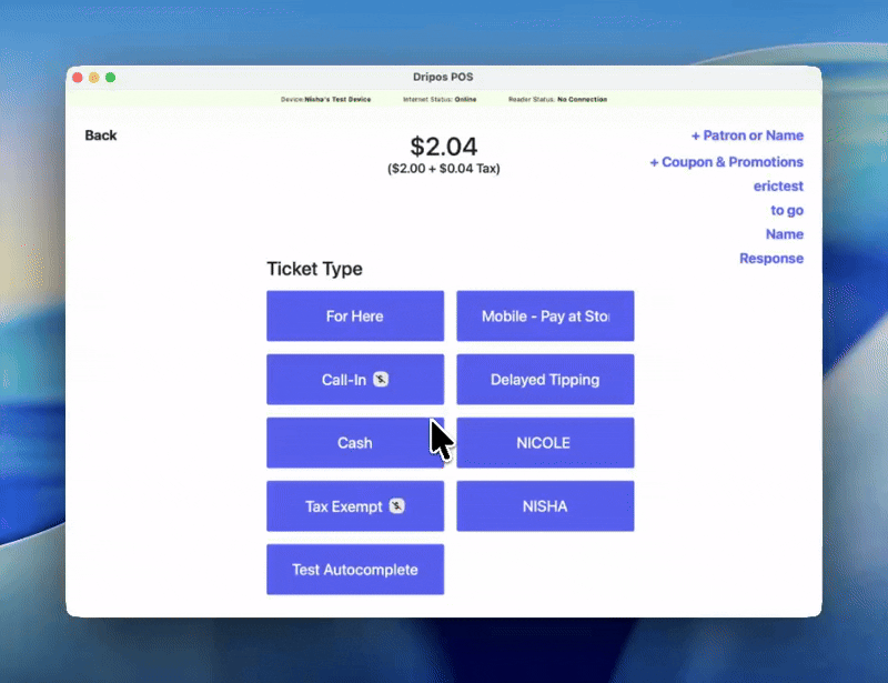 We’re thrilled to unveil a game-changing addition to our suite of solutions: Point of Sale on Card Reader! This innovative feature, utilizing the Stripe S700 card reader, brings a condensed version of our Point of Sale app for on the go payments.Why is this such a big deal?Streamlined Transactions: Now, creating tickets, accepting payments, and applying discounts can all be done seamlessly from your card reader, simplifying your workflow like never before. Enhanced Mobility: Say goodbye to being tied to a fixed physical location. With Point of Sale on Card Reader, you can process payments from anywhere that has an internet connection, whether you’re at the counter, serving customers at their tables, or hosting a pop-up event. Simplified Setup: Getting started is a breeze. Just connect your Stripe S700 card reader to your existing iOS or Android device, and you’re ready to start accepting payments instantly, with minimal setup fuss. Learn more about pairing the card reader here. We’ve updated our card reader troubleshooting article as well to accommodate this new feature. Seamless Integration: Our new feature seamlessly integrates with our existing point of sale app, ensuring that your transaction data is synchronized across all your devices in real-time. We believe that Point of Sale on Card Reader represents a significant step forward in enhancing efficiency and convenience for your coffee shop operations. Whether you’re a bustling coffee shop or a mobile coffee truck, this feature is tailored to meet your on-the-go needs.Automatic Gratuity on Mobile Orders: We’ve added in the ability to create auto-gratuity rules that apply on mobile platforms (Dripos Order Website and Order App). Auto gratuity rules allow you to determine which orders should have gratuity automatically applied. Only one auto gratuity rule can be enabled at a time. Find this feature on the web dashboard under Sales > Checkout Flow > Gratuity.Alphabetically Sorted Modifiers: We’ve released a new feature that allows you to easily sort options within a modifier group alphabetically, for easier and more efficient menu organization!To sort any existing modifier sets alphabetically on the Web Dashboard, navigate to Sales > Menu > Modifiers > Edit > Sort Options. You can always customize further by dragging and dropping options using the three line button on the left hand side.